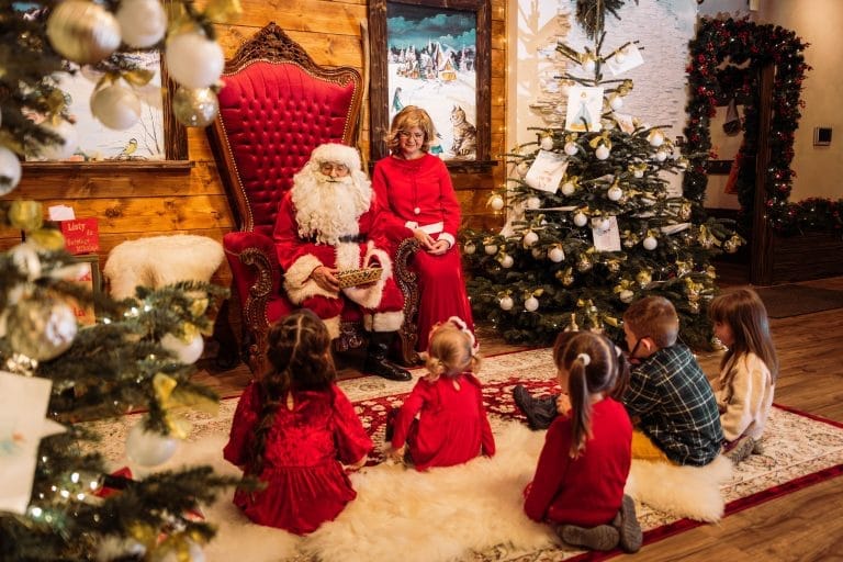 Tu urokliwe dekoracje zdobią każdy kącik tworząc bajkowy klimat. Wokół rozchodzi się zapach świeżo pieczonych pierników i gorącej czekolady. W centralnym punkcie chaty stoi piękna choinka, migocząca kolorowymi światełkami a w kominku radośnie trzaskają płomienie zachęcając do odpoczynku i wsłuchania się w dźwięki świątecznych piosenek. Święty Mikołaj, zawsze uśmiechnięty i serdeczny, wita każdego gościa, dzieląc się opowieściami z całego świata. Przyjdź i poczuj tą magię, przypominającą o cudzie świąt i radości z dzielenia się miłością.