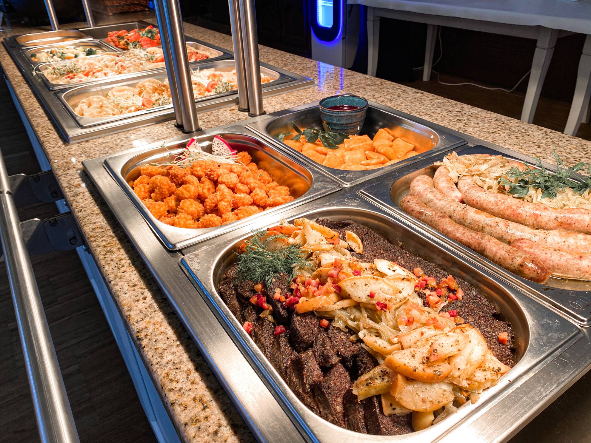 Jeżeli zgłodniejecie podczas całodniowych aktywności możecie skosztować dań, które serwowane są w formie bufetu (Zajazd Przystocze), gdzie samodzielnie możecie skomponować swój zestaw obiadowy. Tuż obok Przystocza znajduje się Jadło Pod Stokiem, w którym polecamy domowej roboty pierogi czy dania typu fast food.
